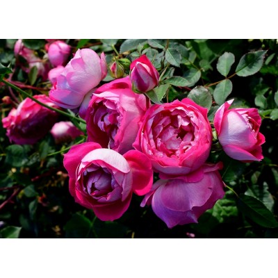 Бутоны собраны в соцветия по 3-4 цветка в каждом. При этом цветки распускаются постепенно, а не одновременно. Аромат розы слабодушистый, но очень интенсивный.