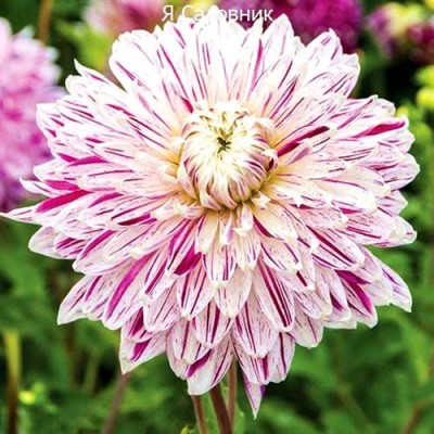 Георгина Авиньон — это великолепный многолетний цветок, который поражает своей красотой. Его махровые белые лепестки украшены сиренево-пурпурными штрихами и точками, создавая неповторимый образ. Этот сорт георгины никого не оставит равнодушным.